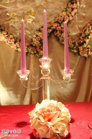 舞台上擺放了燭台(配合第一次進場要用的點同心燭活動,建彥特別去買的水晶燭台)