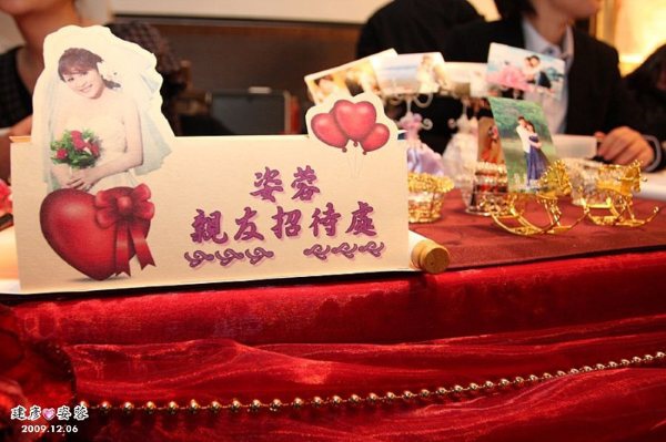 一般的收禮處,都會寫”男方收禮處”、”女方收禮處”