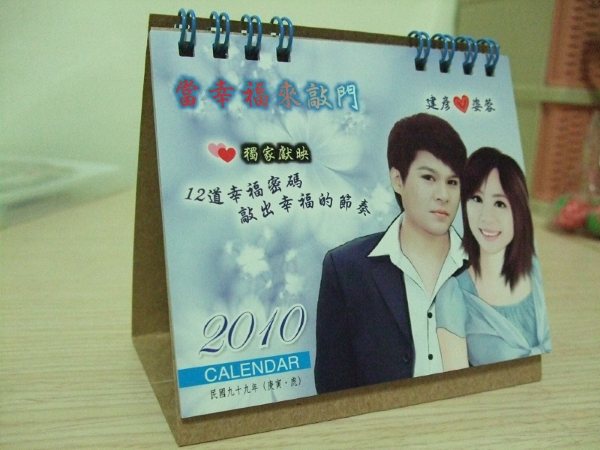 由我精選12道幸福密碼 嵌在桌曆裡 桌曆很實用 也有我們的影像